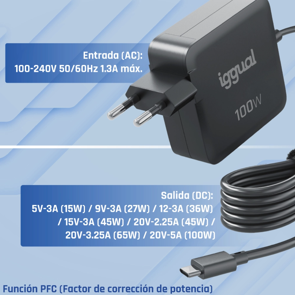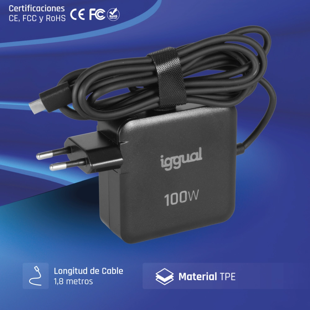 iggual Cargador portátil y móvil tipo C PD 100W