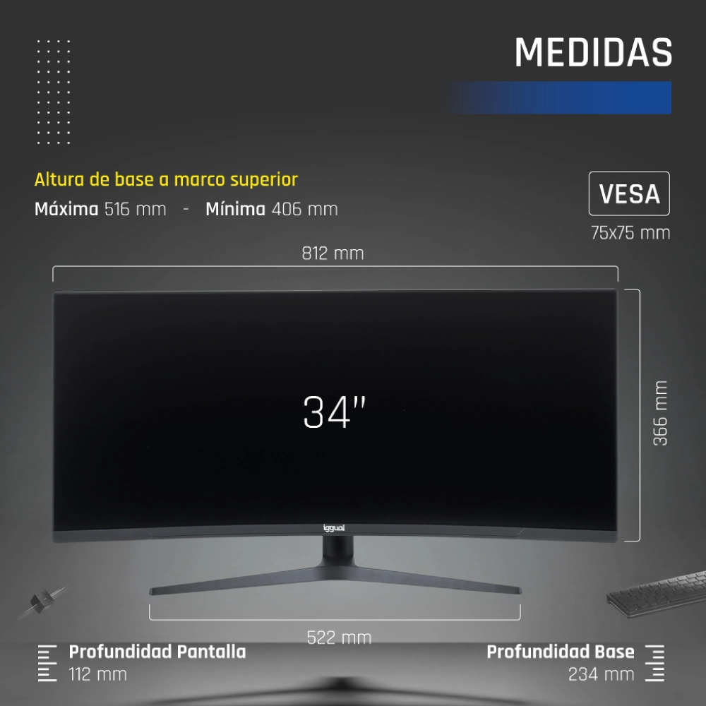 - Altura máxima (base a marco superior): 516 mm